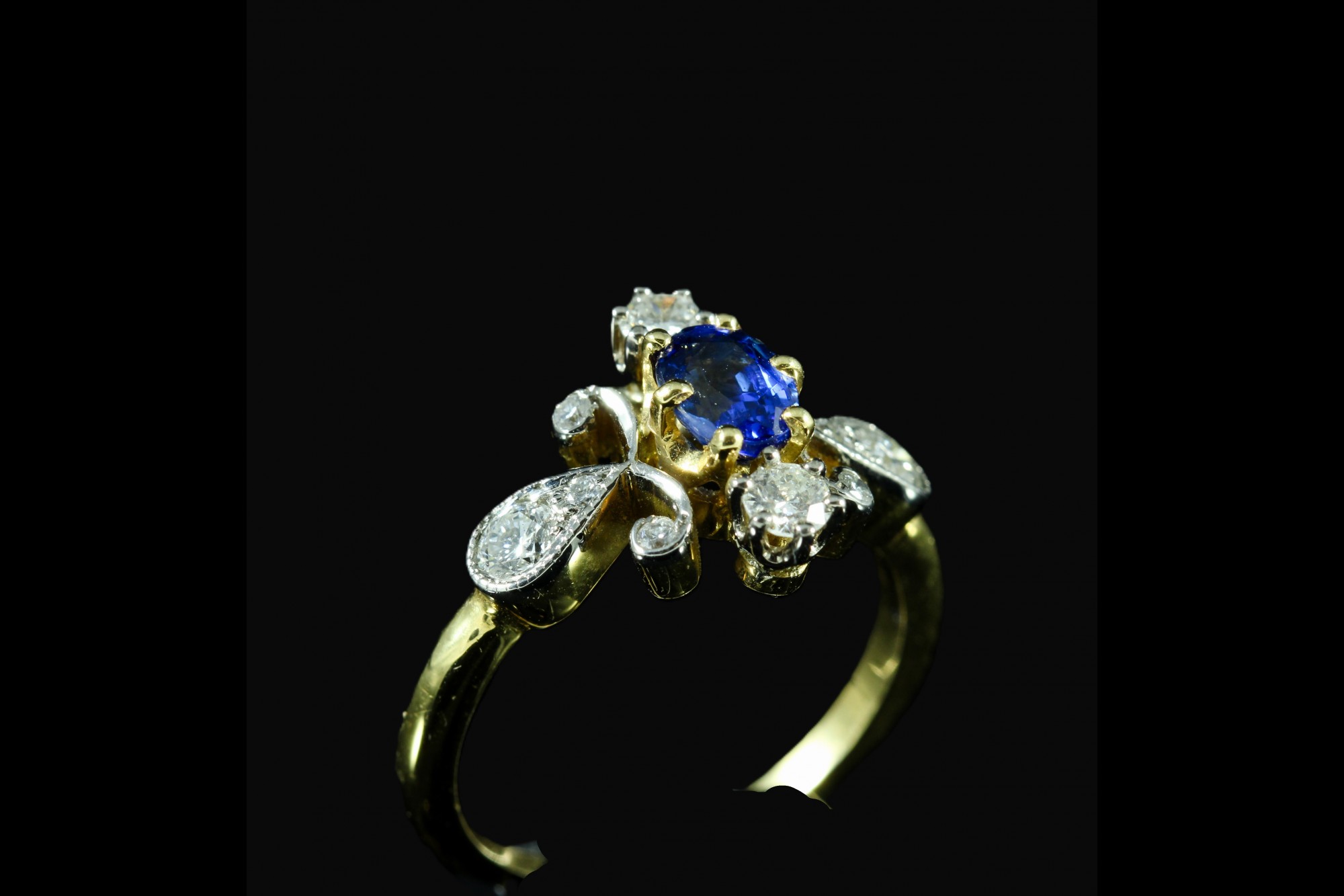 Bague or et platine sertie d'un saphir de 0,73 carat dans un entourage de diamants (0,47ct)