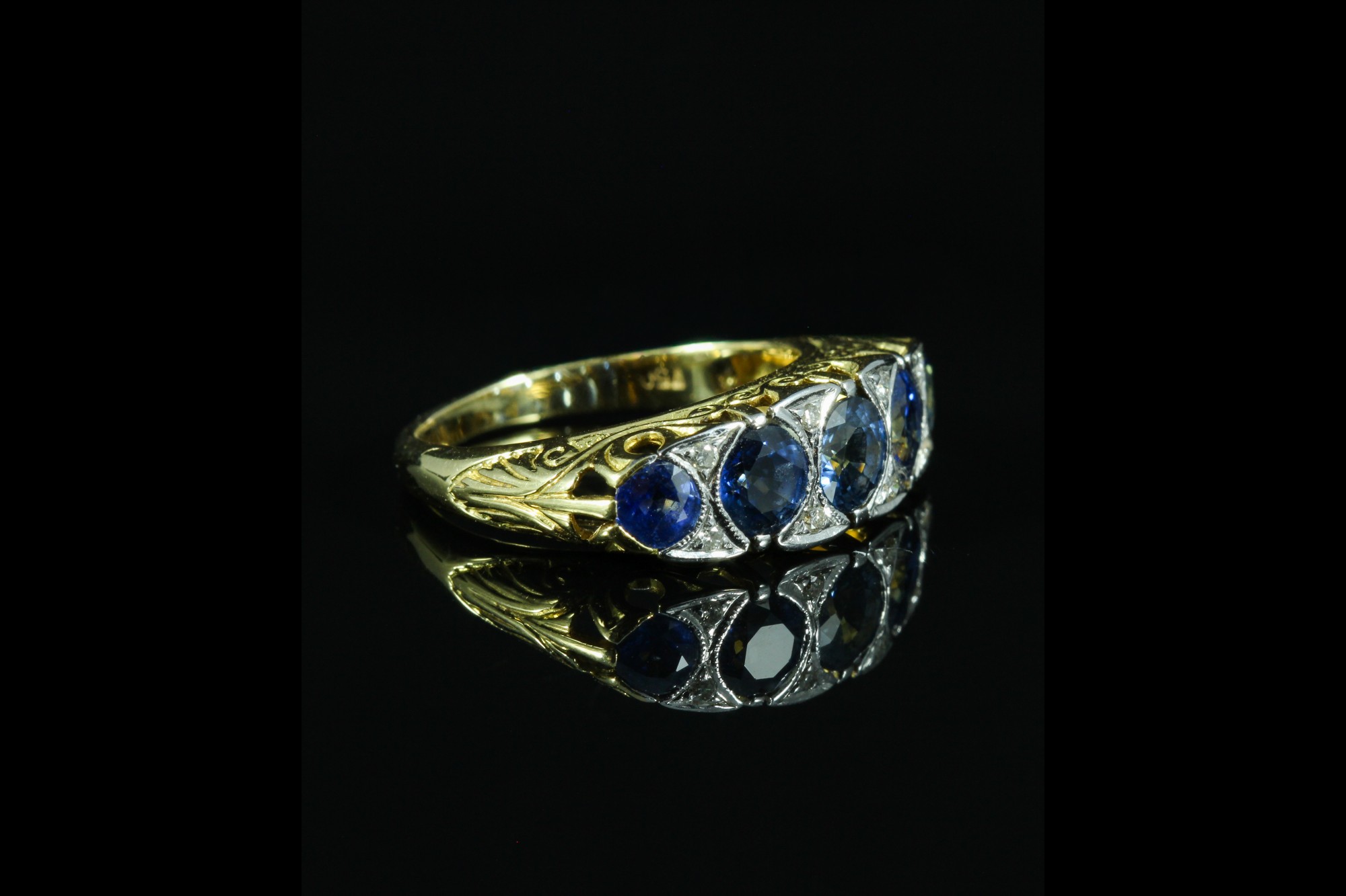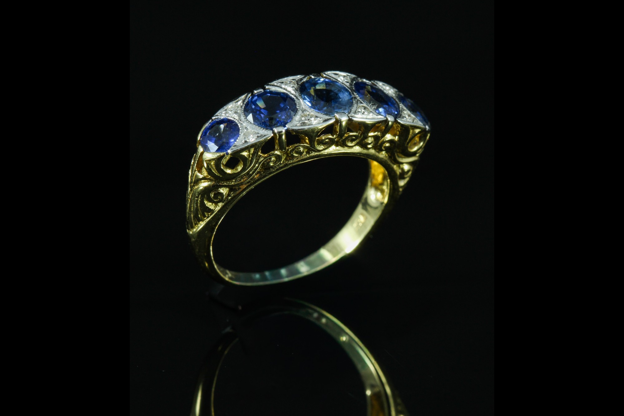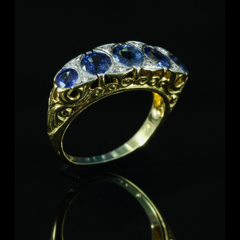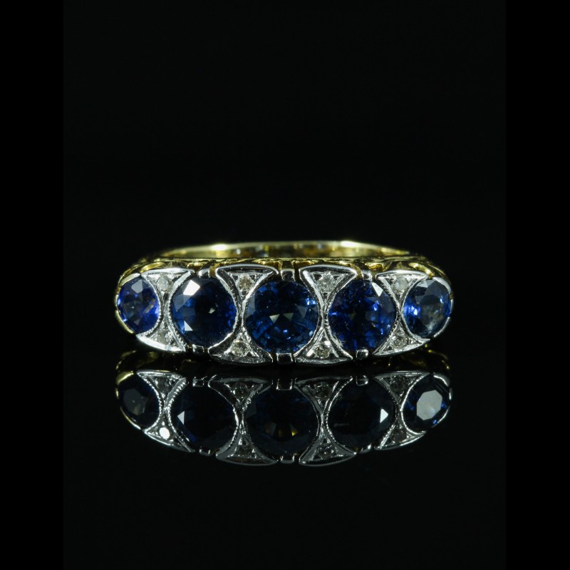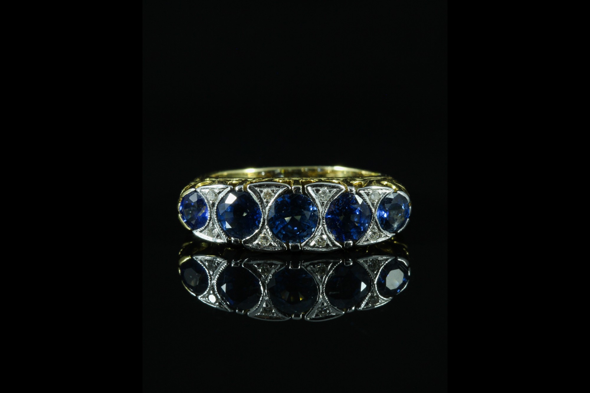 Bague jarretière or et platine sertie de saphirs 1.40 carat environ et diamants