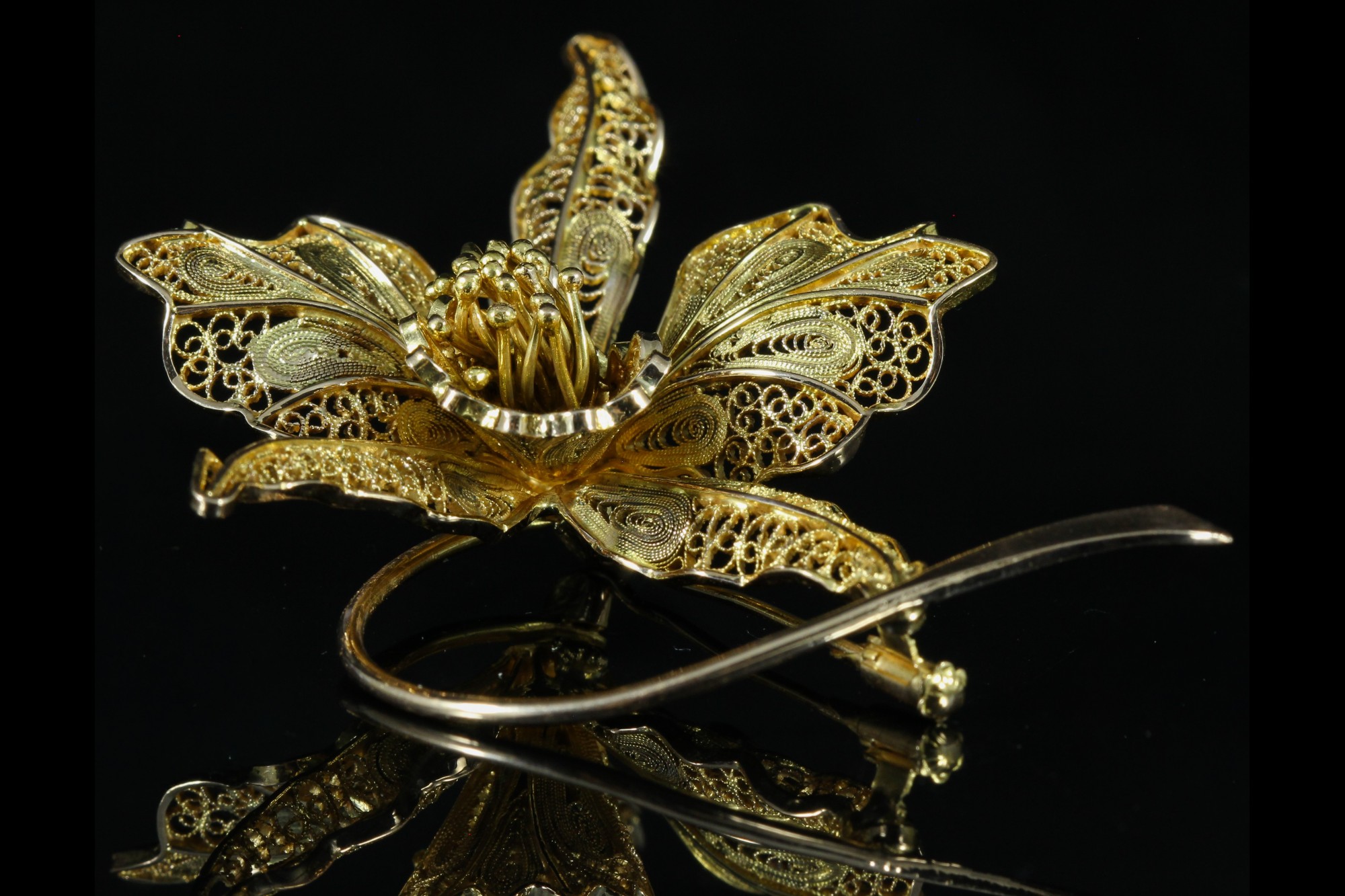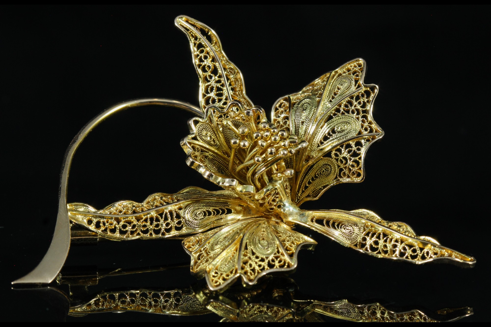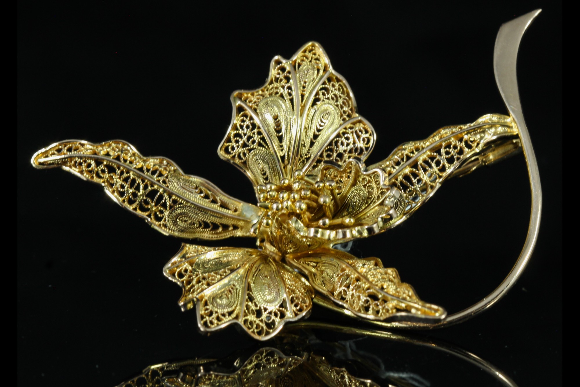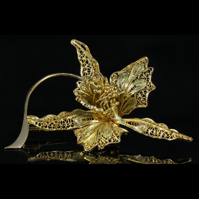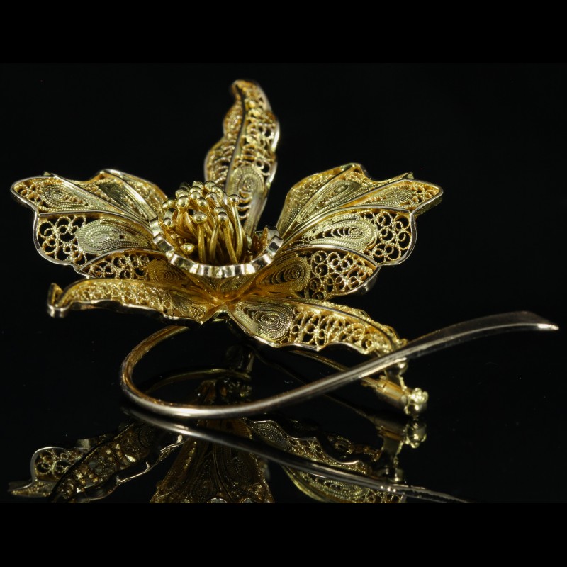 Grande broche représentant une fleur stylisée avec pétales en filigrane