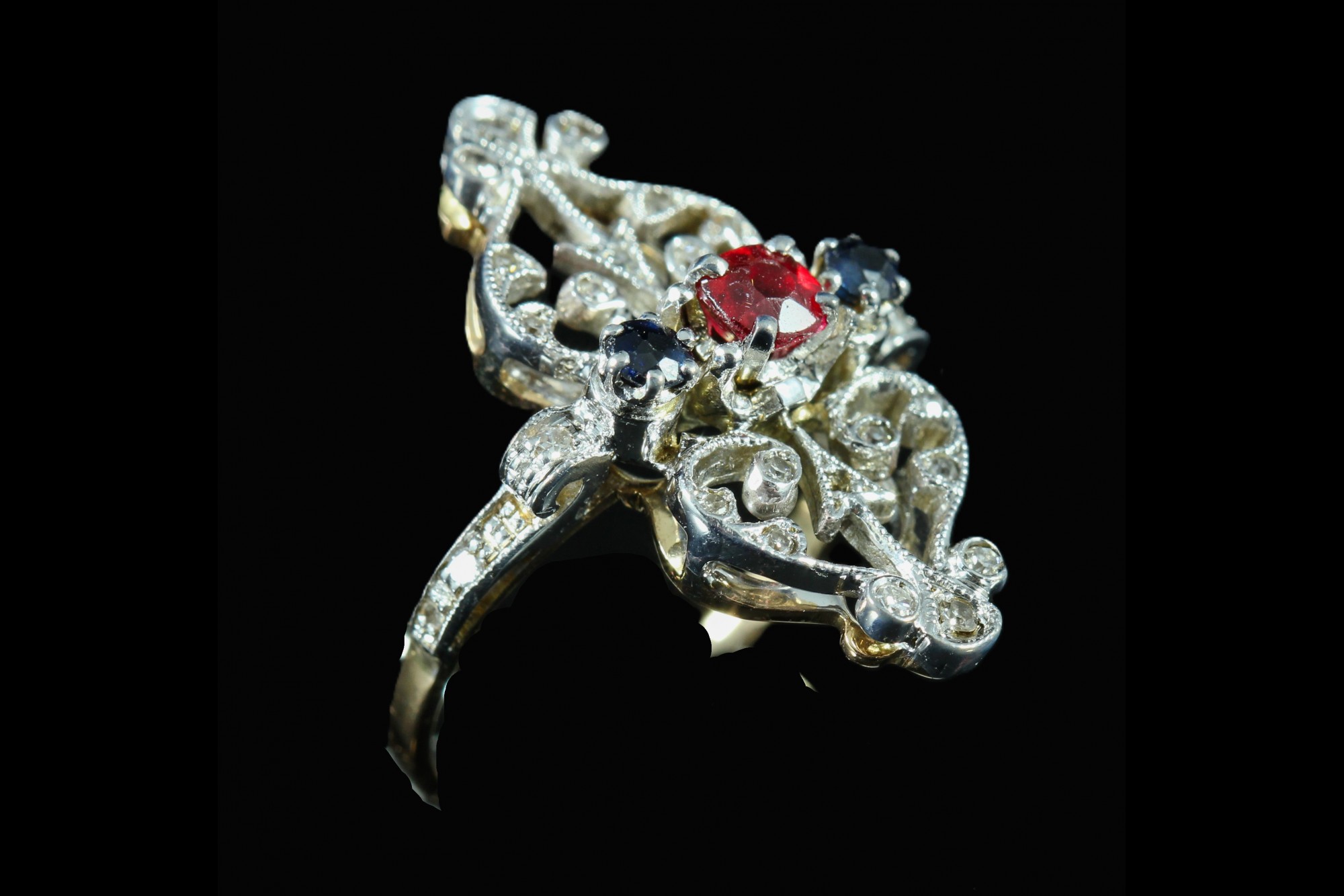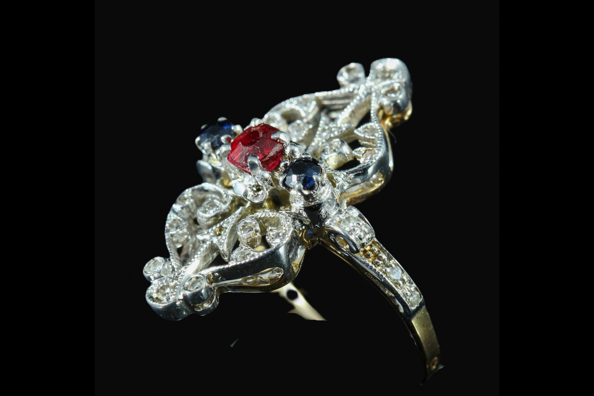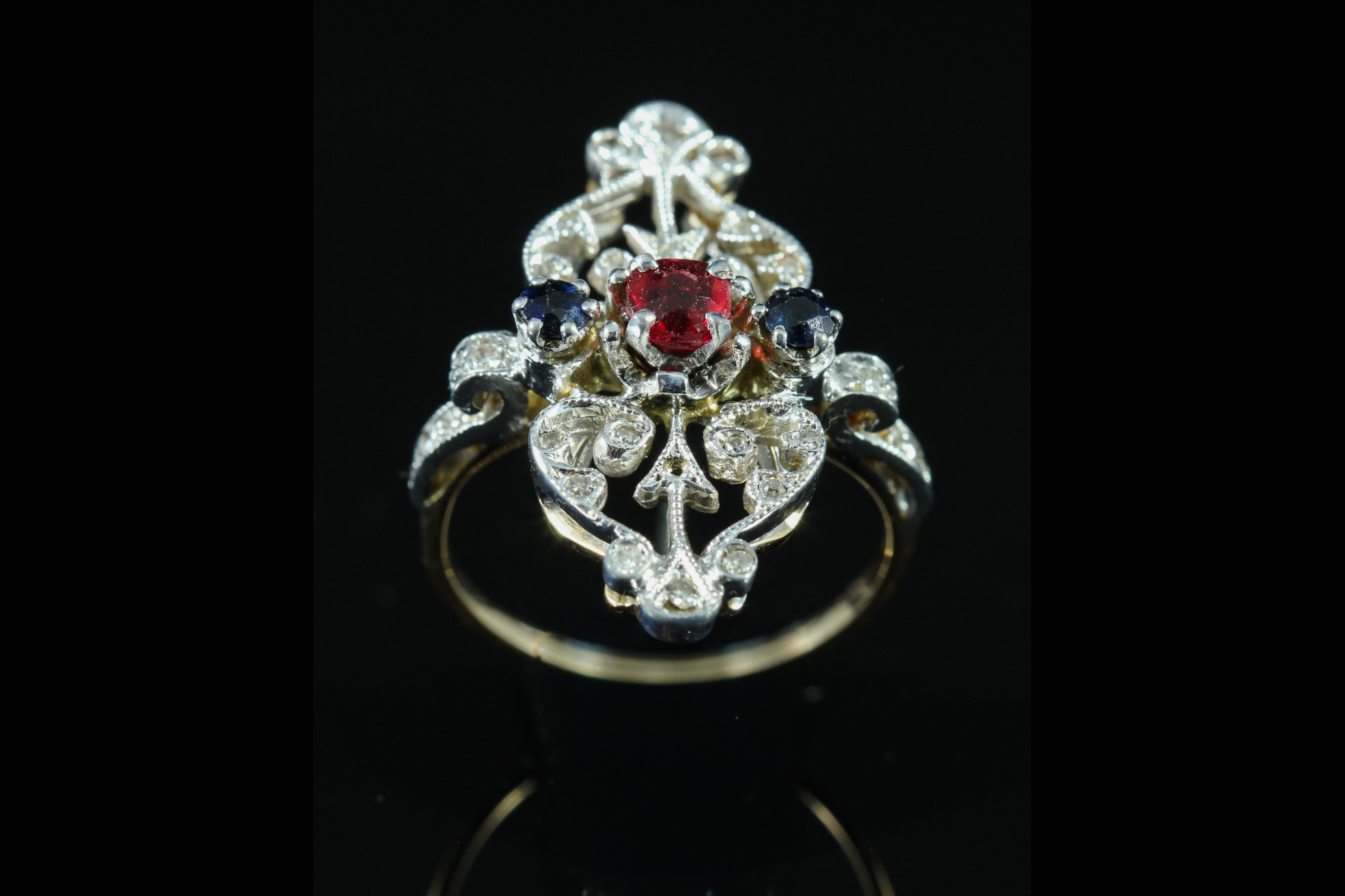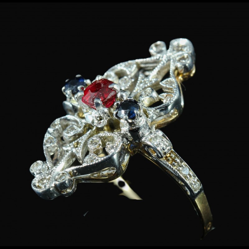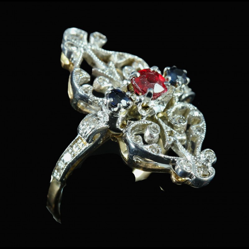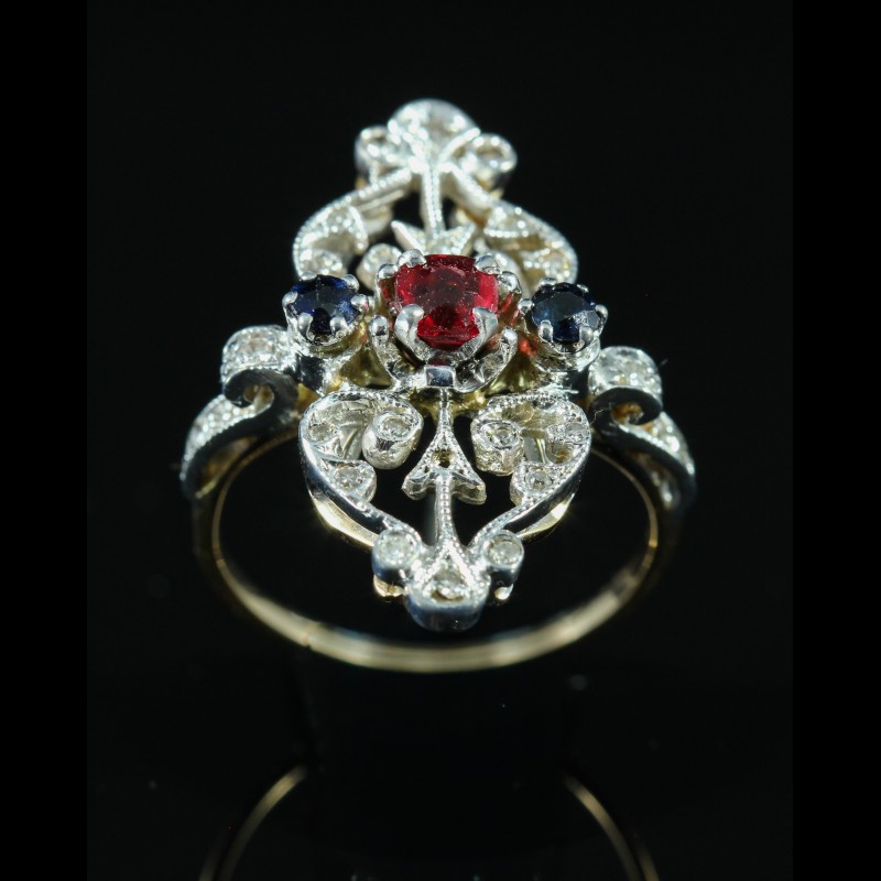 Bague en or ornée d'une tourmaline saphirs et diamants