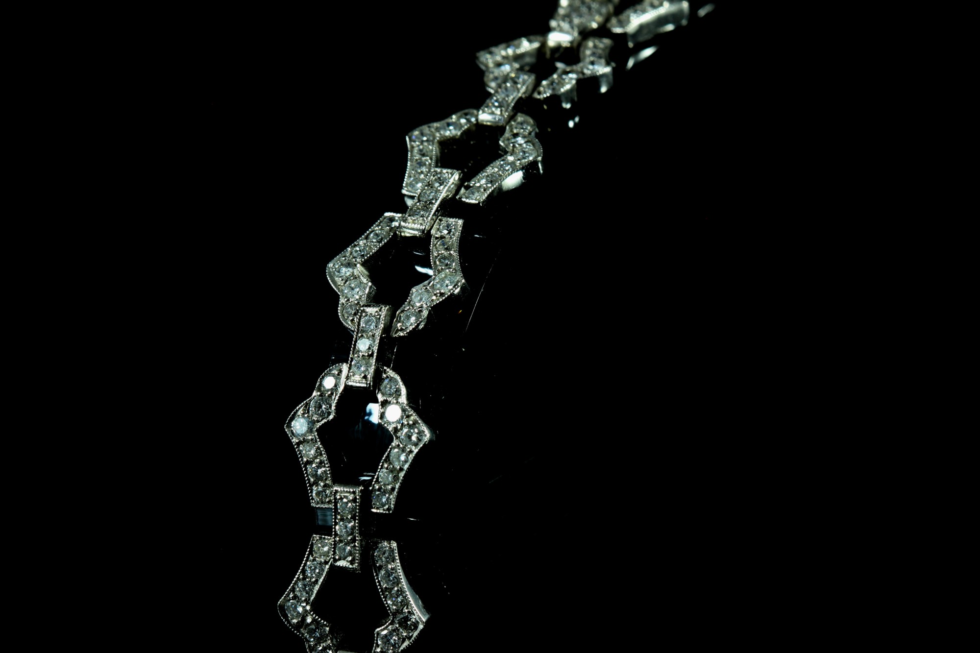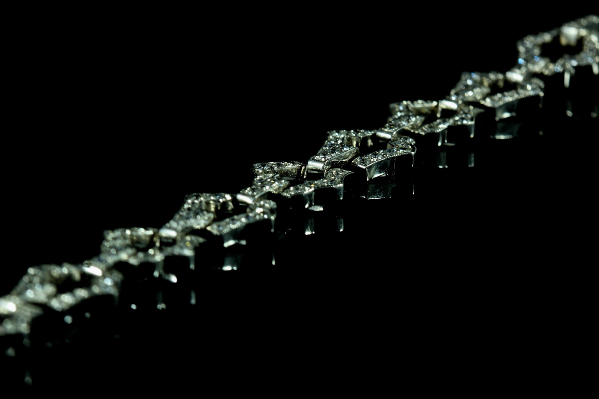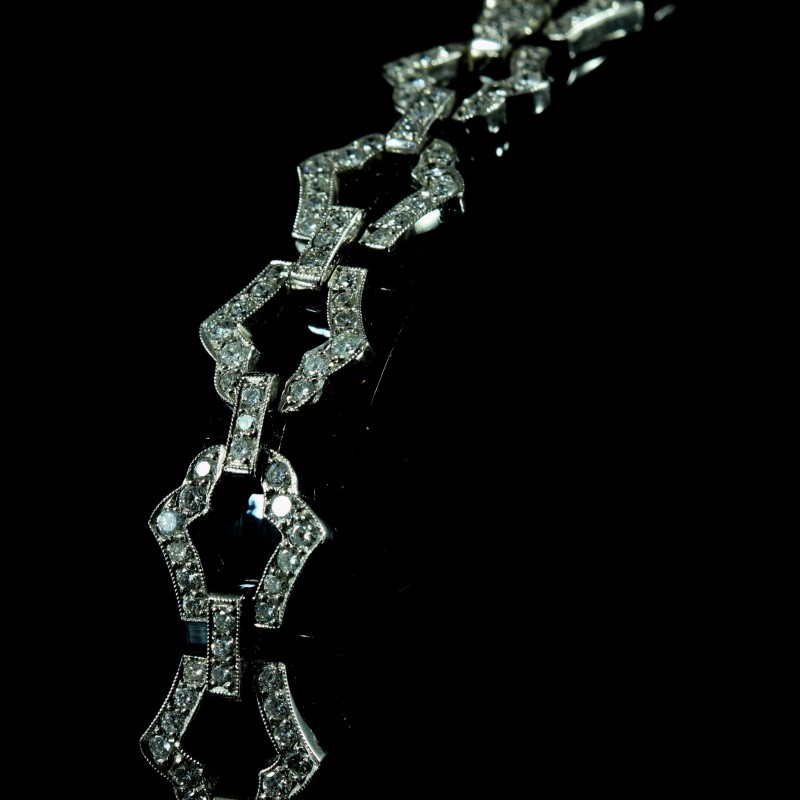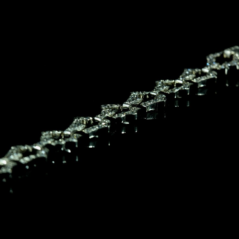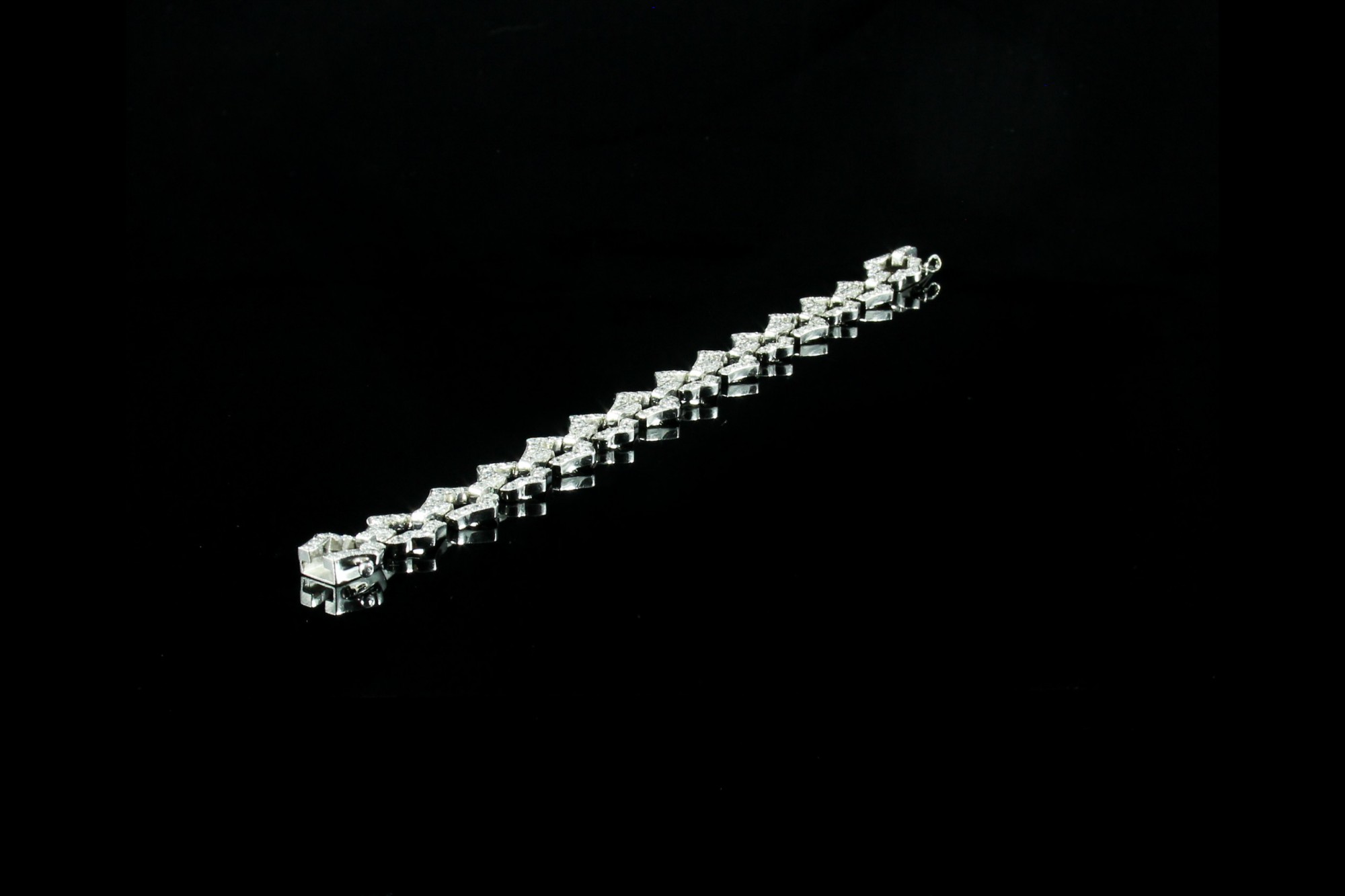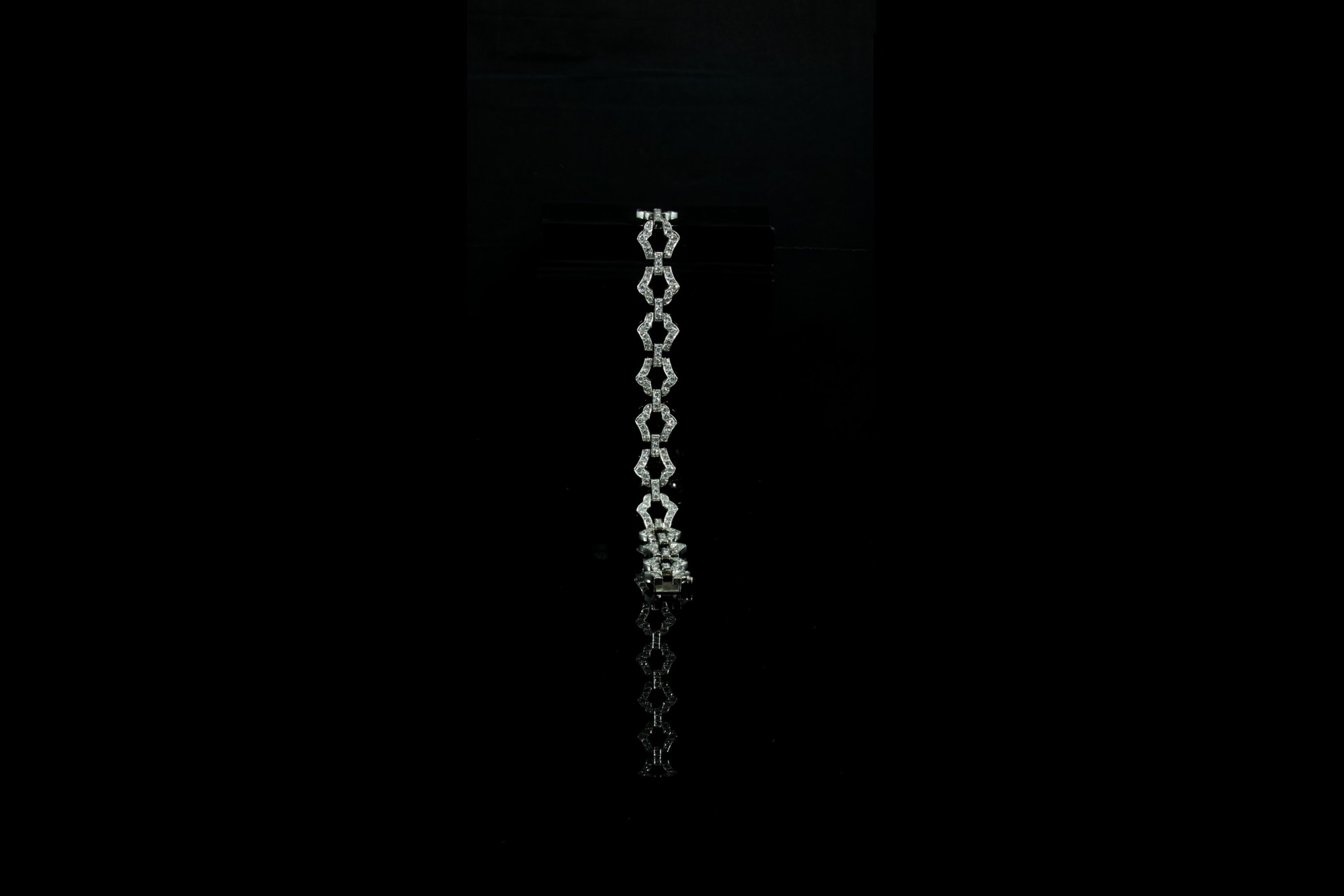 Ce bracelet d’un poids de 23,1 g est serti de diamants totalisant 3,85 carats, offrant éclat et sophistication.