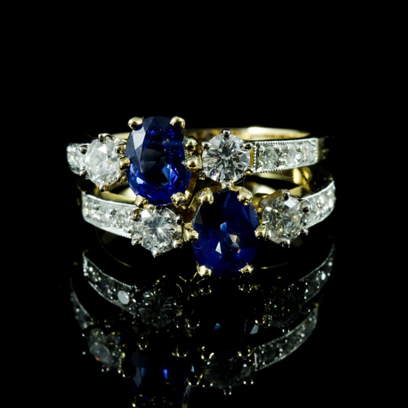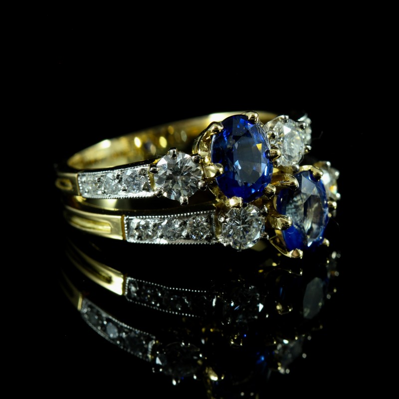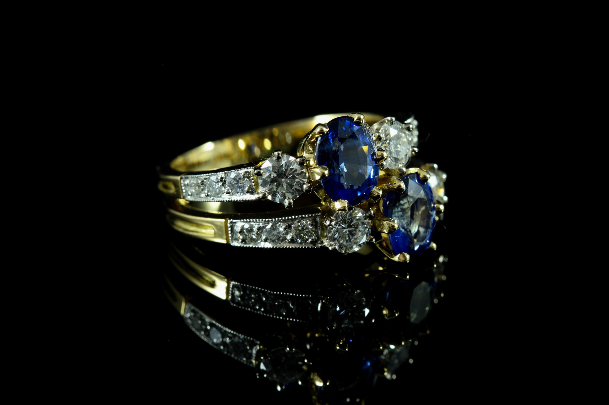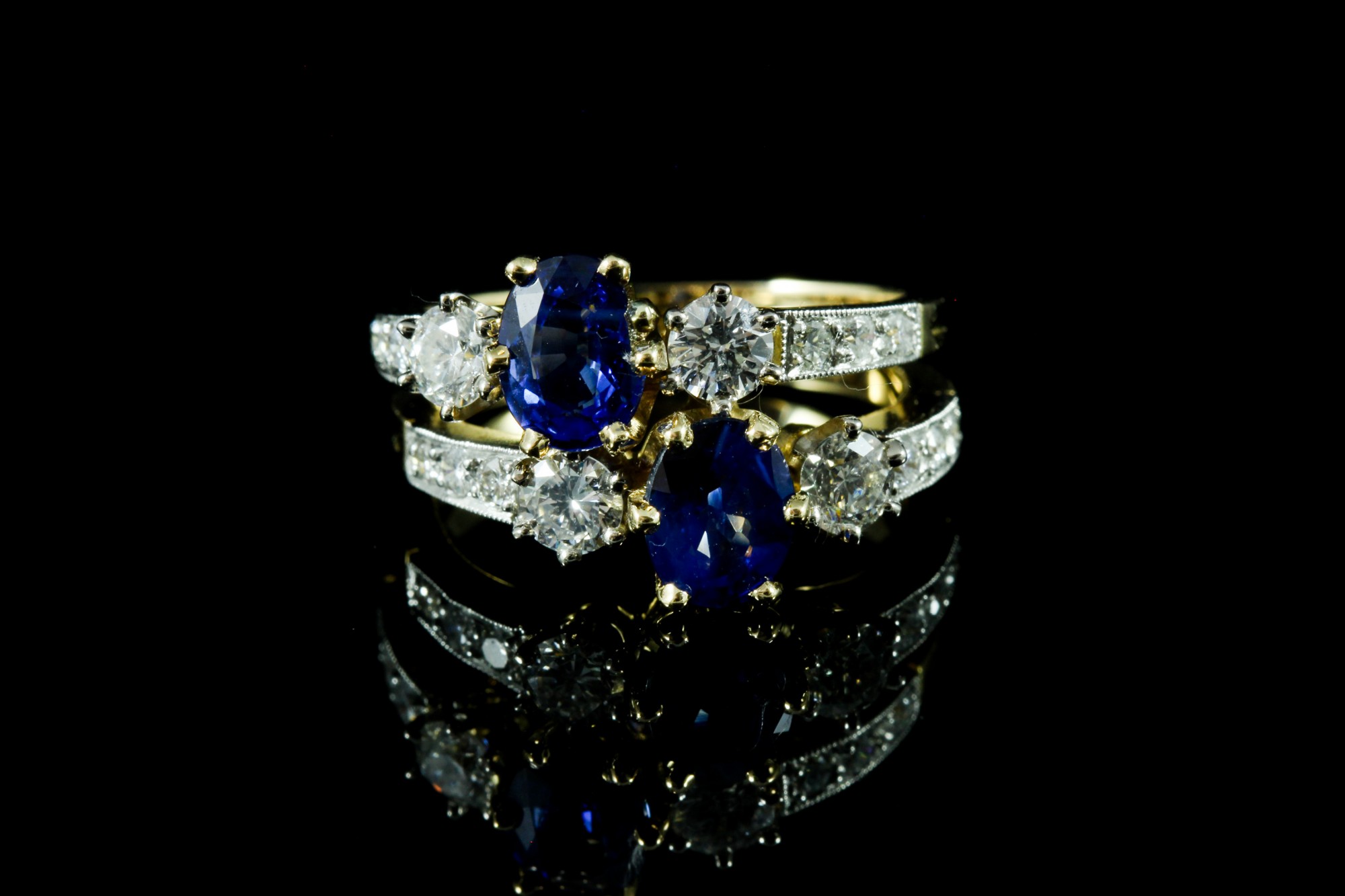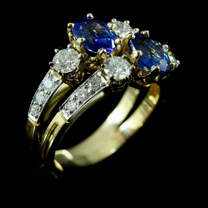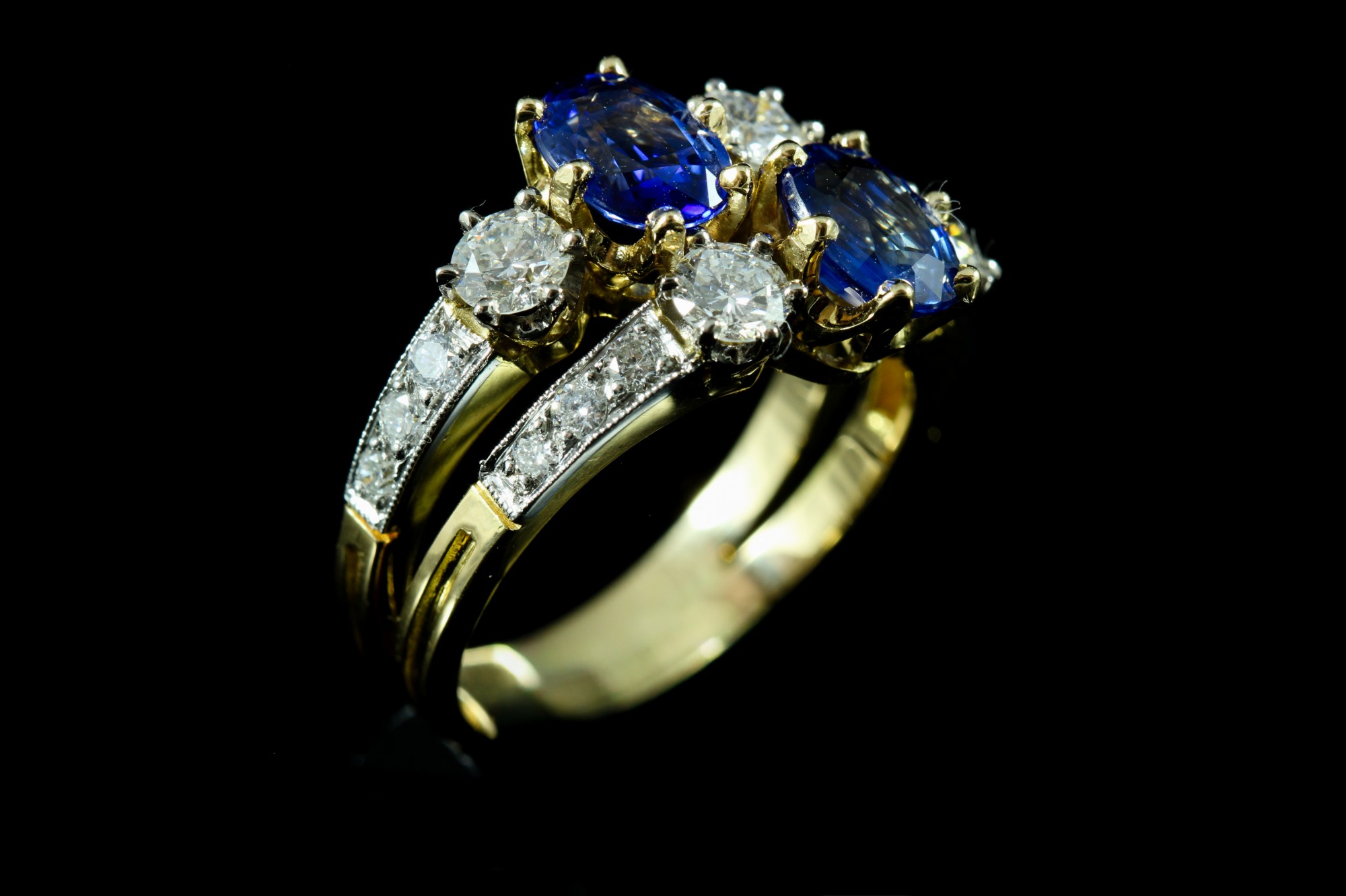 Cette bague met en valeur un saphir de 2,15 carats, accompagné de diamants totalisant 1,07 carat, pour un poids total de 6,8 g.