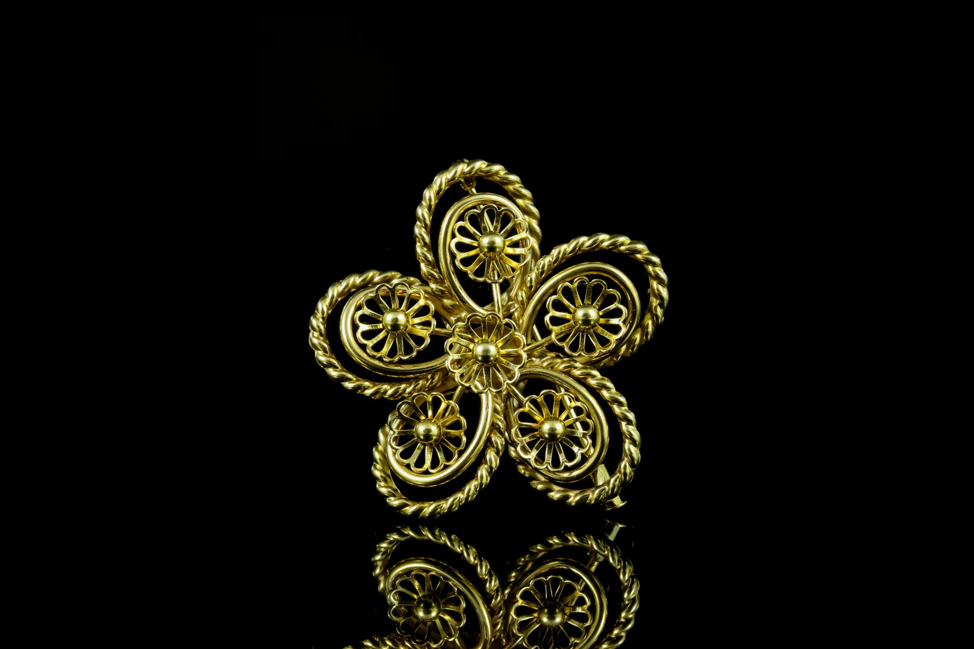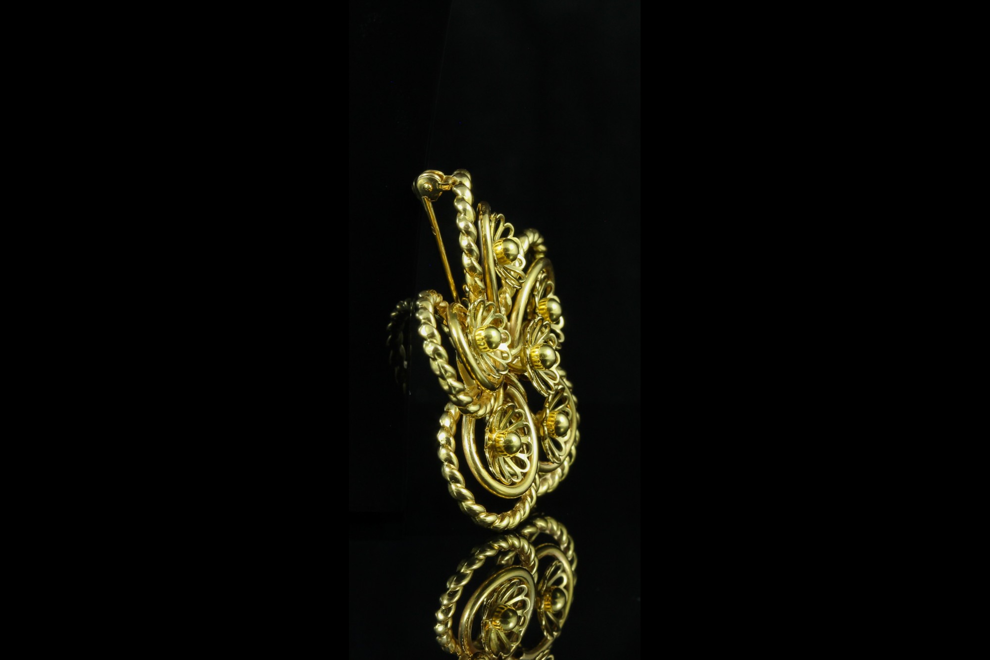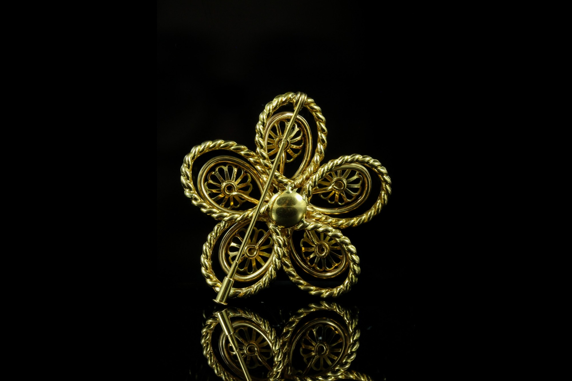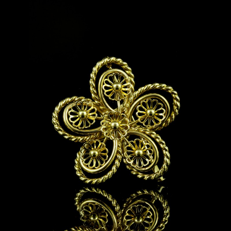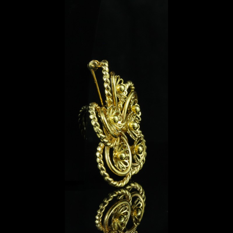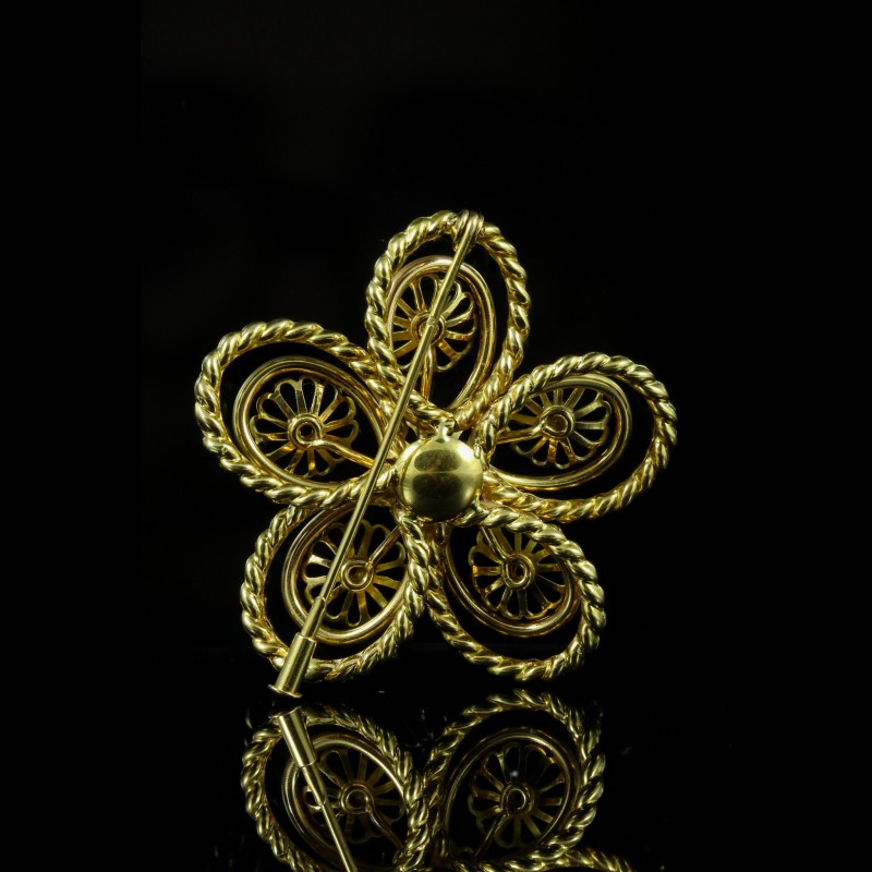 Élégante et délicatement travaillée, cette broche en or rose séduit par son motif floral raffiné et ses lignes harmonieuses. Véritable pièce de caractère, elle capte la lumière avec subtilité et apporte une touche de sophistication à toutes vos tenues. Idéale pour sublimer un revers de veste ou une étole, elle incarne le charme intemporel de la joaillerie.